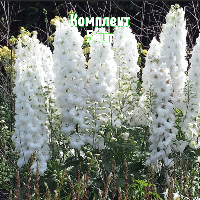 Комплект 5шт / Дельфиниум Мэджик Фонтейнс Пьюр Вайт: фото и описание